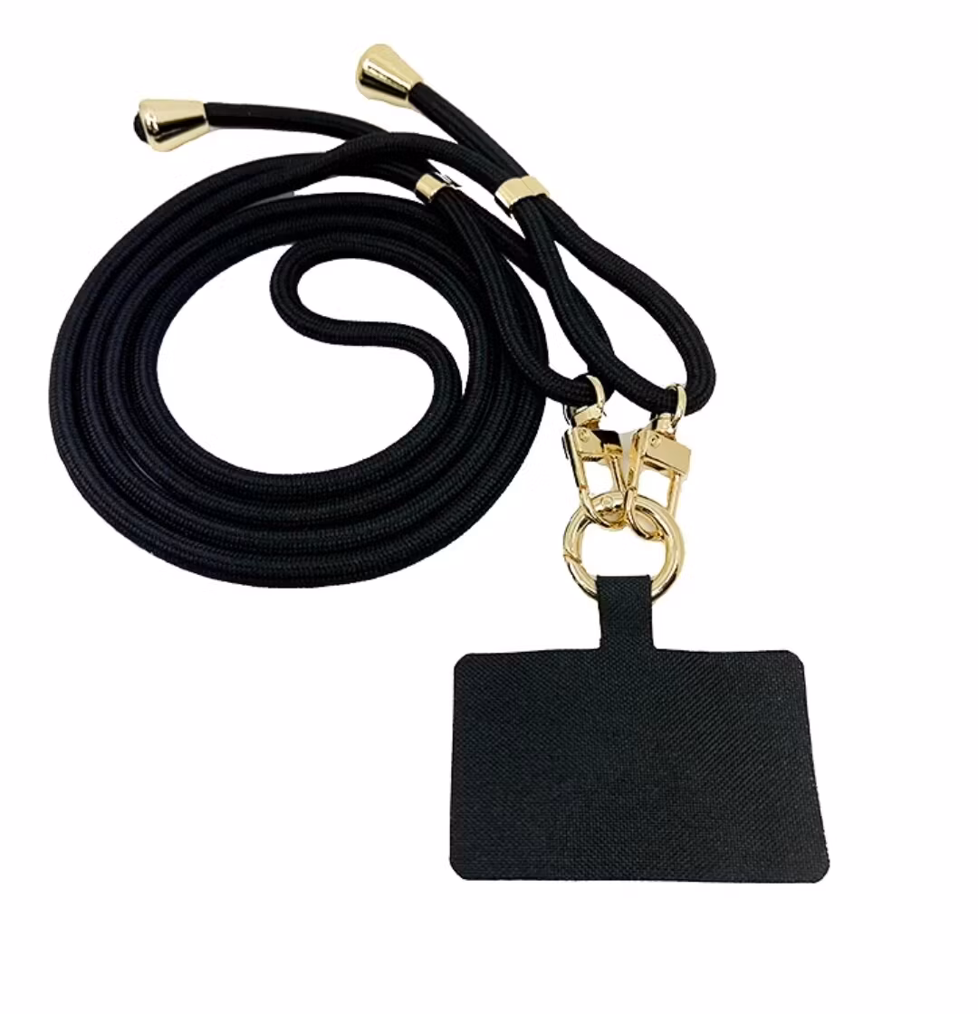 Band i karbinrep som du kan hänga mobilen i. Är 165 cm som längst men är reglerbart. Svart eller gammelrosa. Perfekt när du är på språng eller ska på konsert och inte får ha väska med dig.