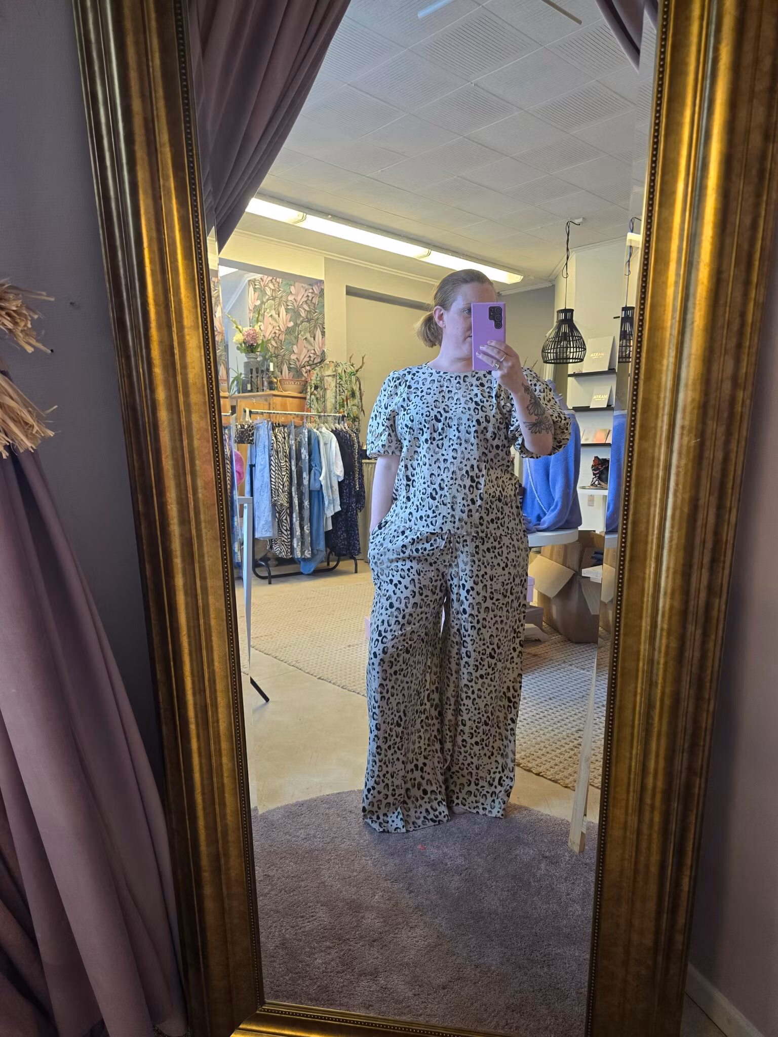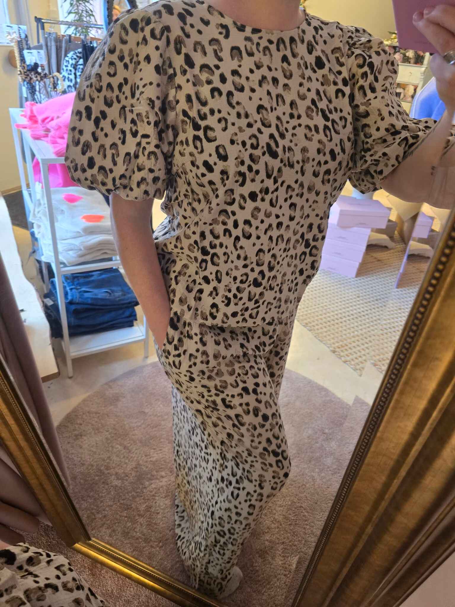 Top i leo med puffärm, rund hals och sött knytband i ryggen.75% Lenzing Ecovero (miljömärkt) viskos, 25% polyamid.
